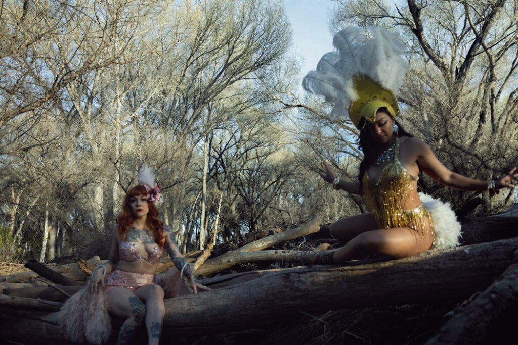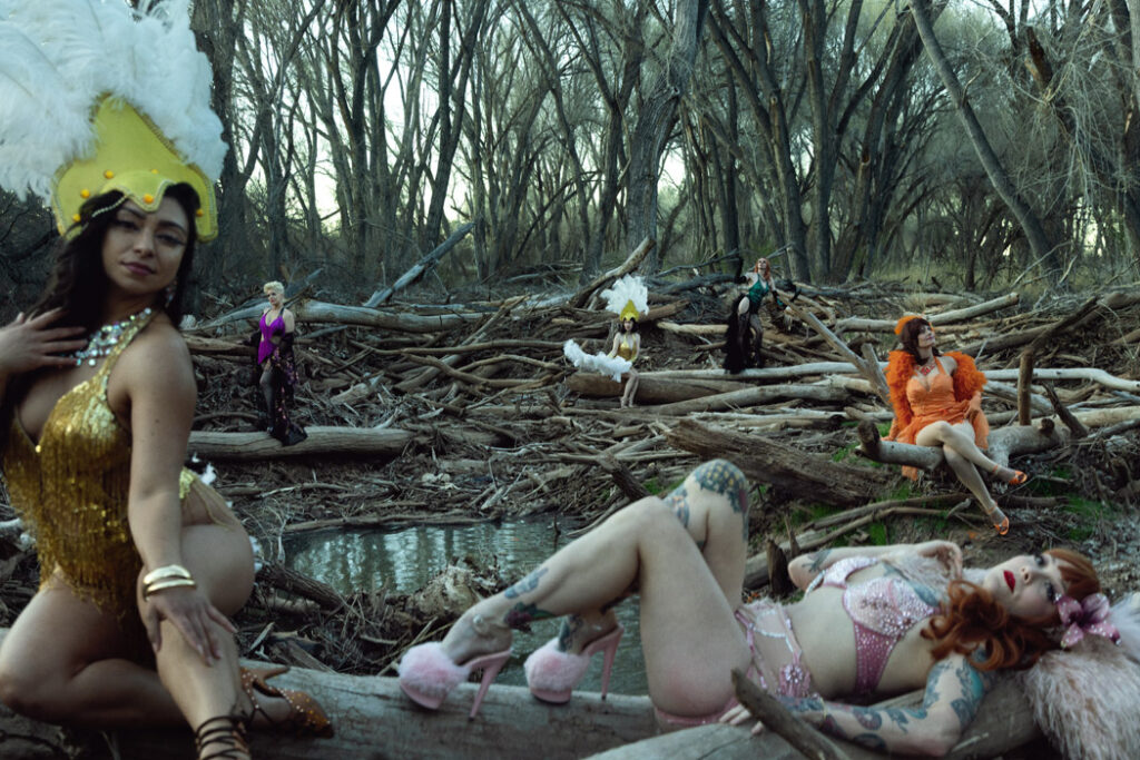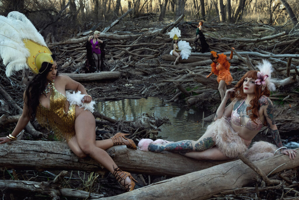 Performing beneath the glittering lights of a big city stage, these burlesque dancers were caught in a sudden flood—torn from the spotlight and swept downstream into the unknown…